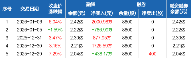 恒辉安防:融资净买入2000.98万元,融资余额2.42亿元(01-06)
