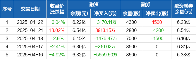 震裕科技:融资净偿还3170.11万元,融资余额6.22亿元(04-22)