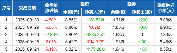 震裕科技:融资净偿还128.53万元,融资余额8.85亿元(09-30)