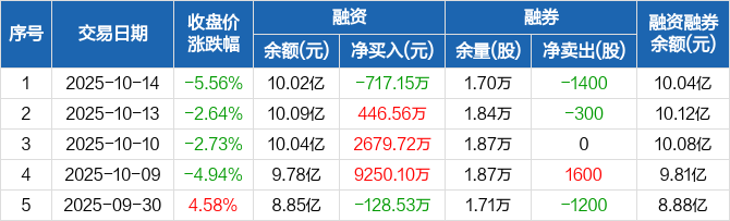 震裕科技:融资净偿还717.15万元,融资余额10.02亿元(10-14)