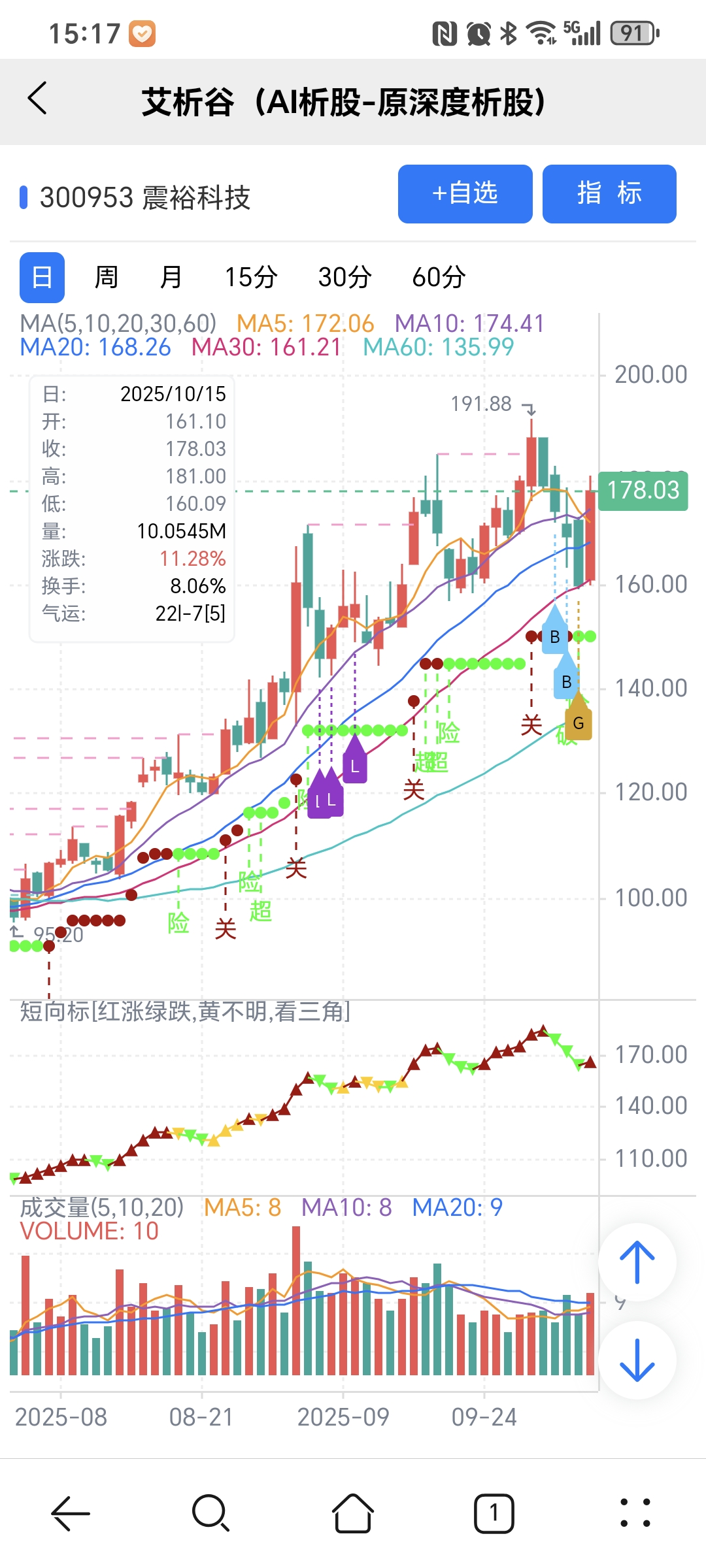 图中B、G、L 关注标记是对应AI选股模型当天下午2点多给出。