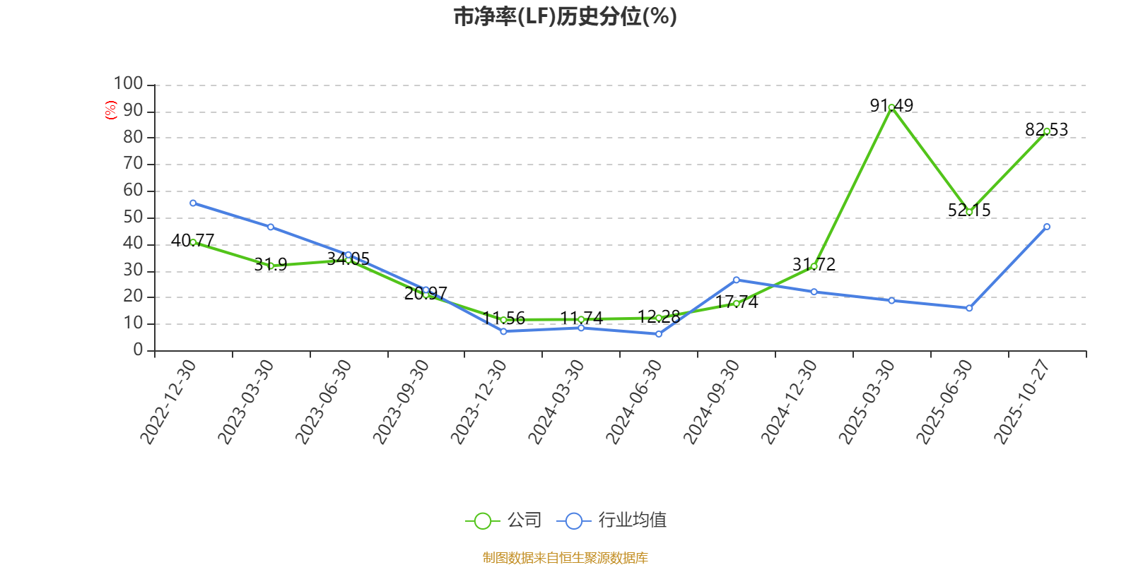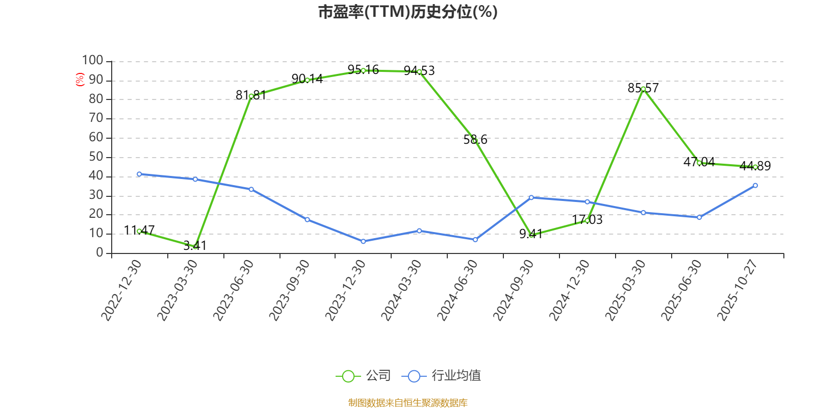 市盈率、市净率为负时,不显示当期分位数,会导致折线图中断。