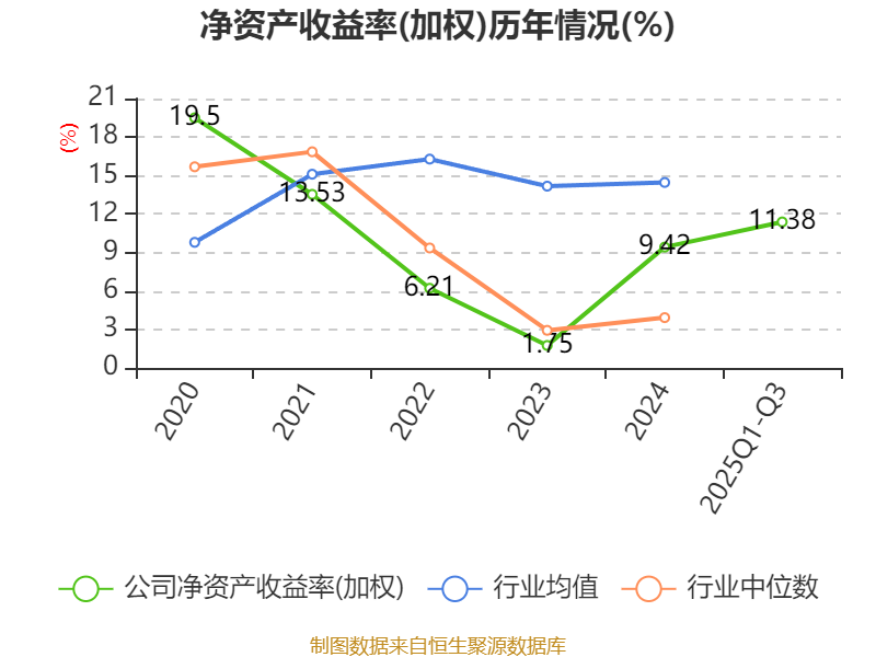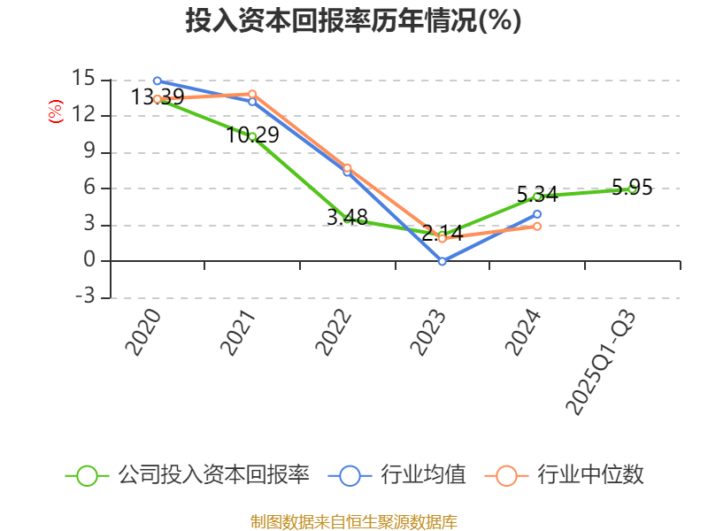 盈利能力方面, 2025年前三季度公司加权平均净资产收益率为11.38%,同比上升4.91个百分点。公司2025年前三季度投入资本回报率为5.95%,较上年同期上升2.1个百分点。