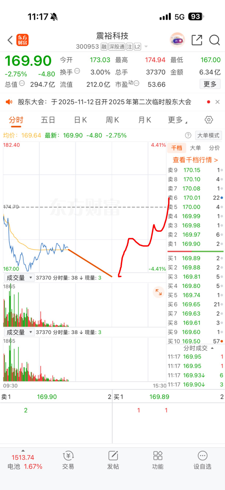 $震裕科技(SZ300953)$ 下午走势