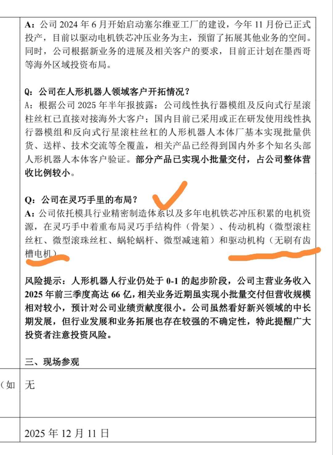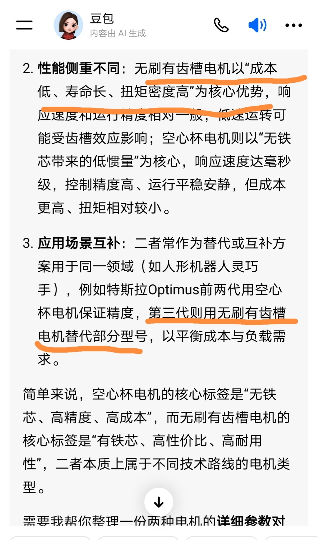 $震裕科技(SZ300953)$ 特斯拉Optimus机器人前两代用空心杯电机保证精度,第三代擎天柱机器人则用无刷有齿槽电机替代部分型号,以平衡成本与负载需求。震裕科技的调研报告正好对上了这些信息,为了给特斯拉机器人减重降温缩小关节尺寸震裕产品不断迭代高集成化模组与灵巧手部件组件。
