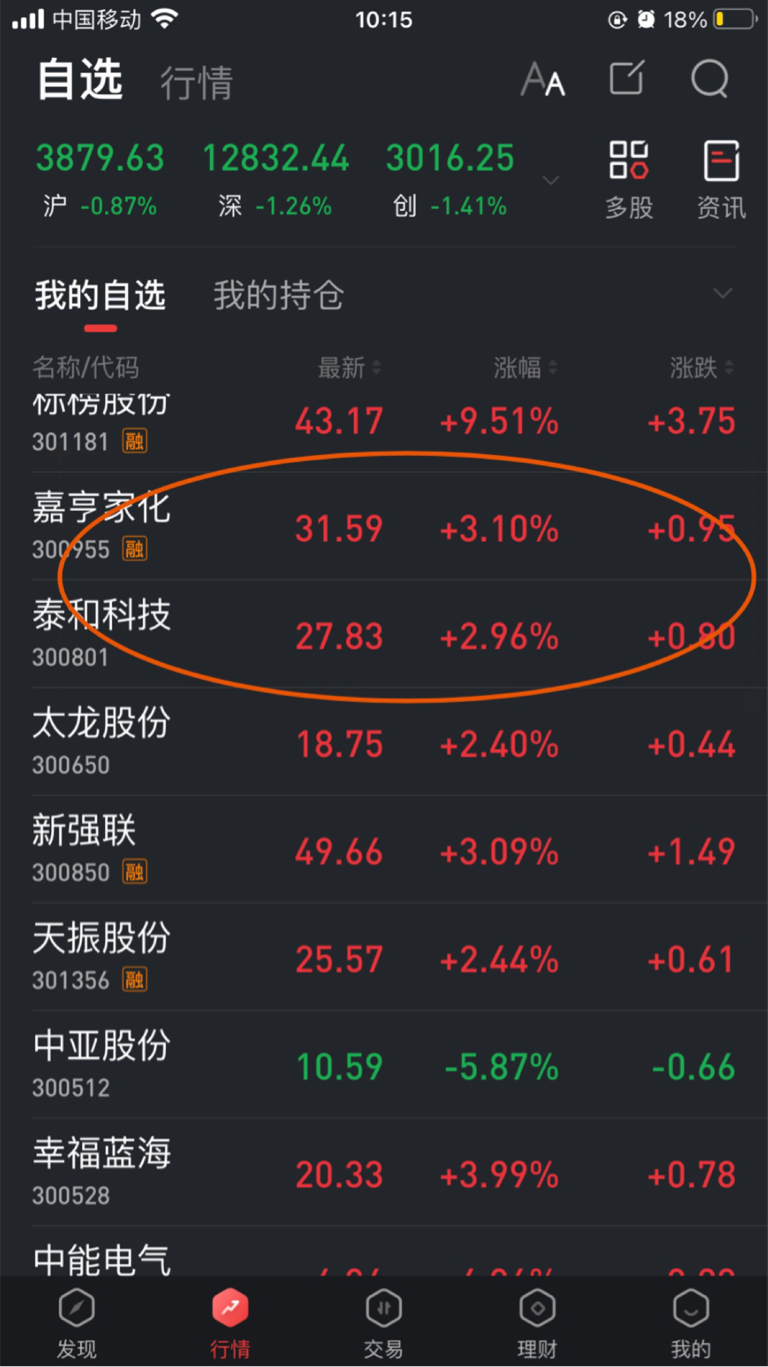 $嘉亨家化(SZ300955)$ $泰和科技(SZ300801)$ 今天主要看好这两只为主!市场跌成够4100只下跌,这两只还能涨3%,难能可贵了。优先嘉亨!