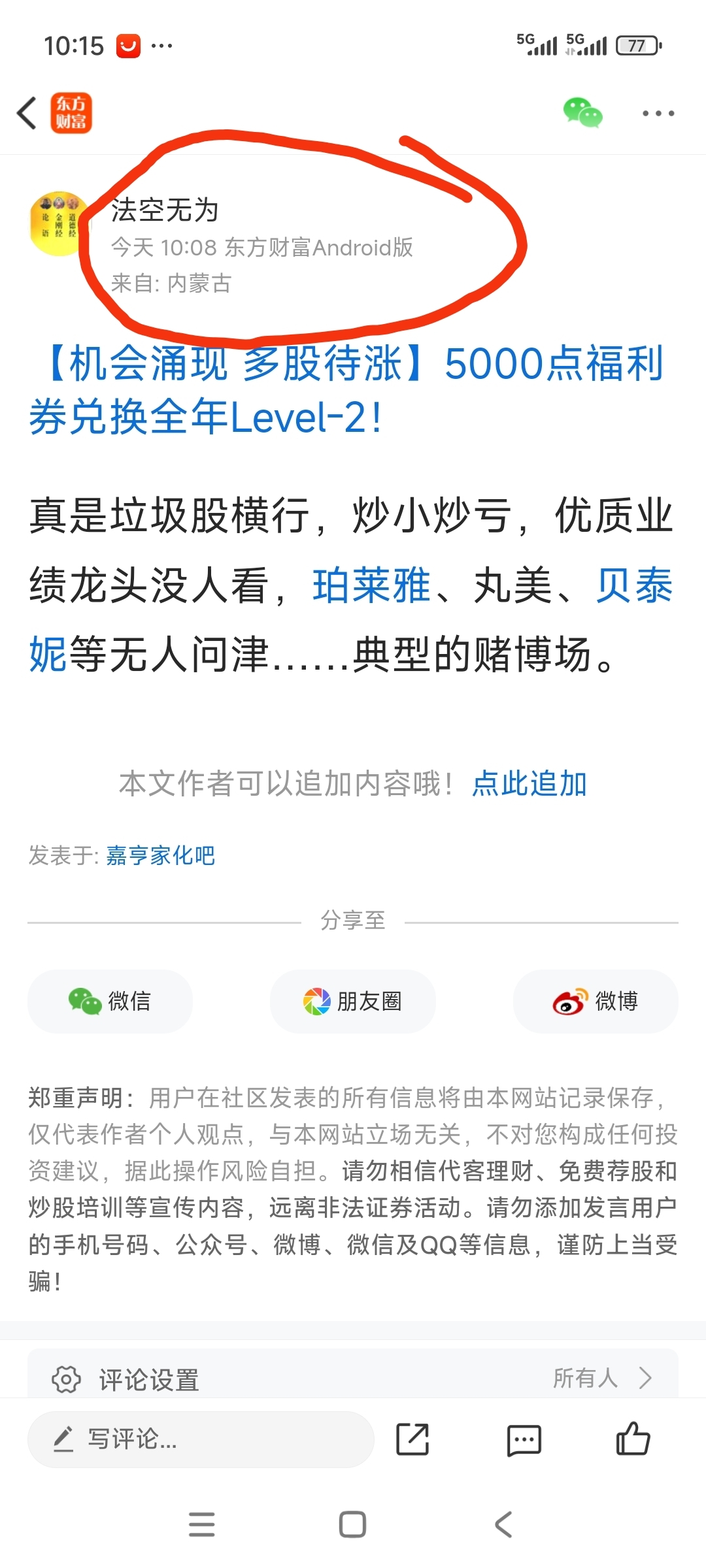 温馨提示: 1.根据《证券法》规定,禁止编造、传播虚假信息或者误导性信息,扰乱证券市场;2.用户在本社区发表的所有资料、言论等仅代表个人观点,与本网站立场无关,不对您构成任何投资建议。用户应基于自己的独立判断,自行决定证券投资并承担相应风险。《东方财富社区管理规定》