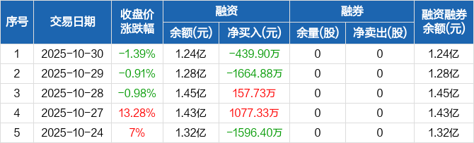 嘉亨家化:融资净偿还439.9万元,融资余额1.24亿元(10-30)