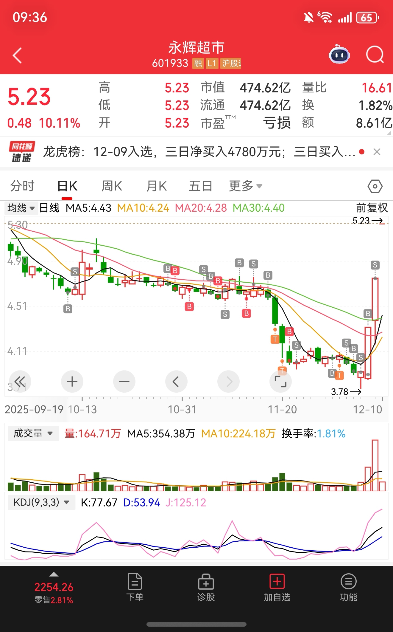 昨天卖了两连板的永辉超市补嘉亨家化的仓,结果永辉今天一字涨停,有陈小群在后面还有