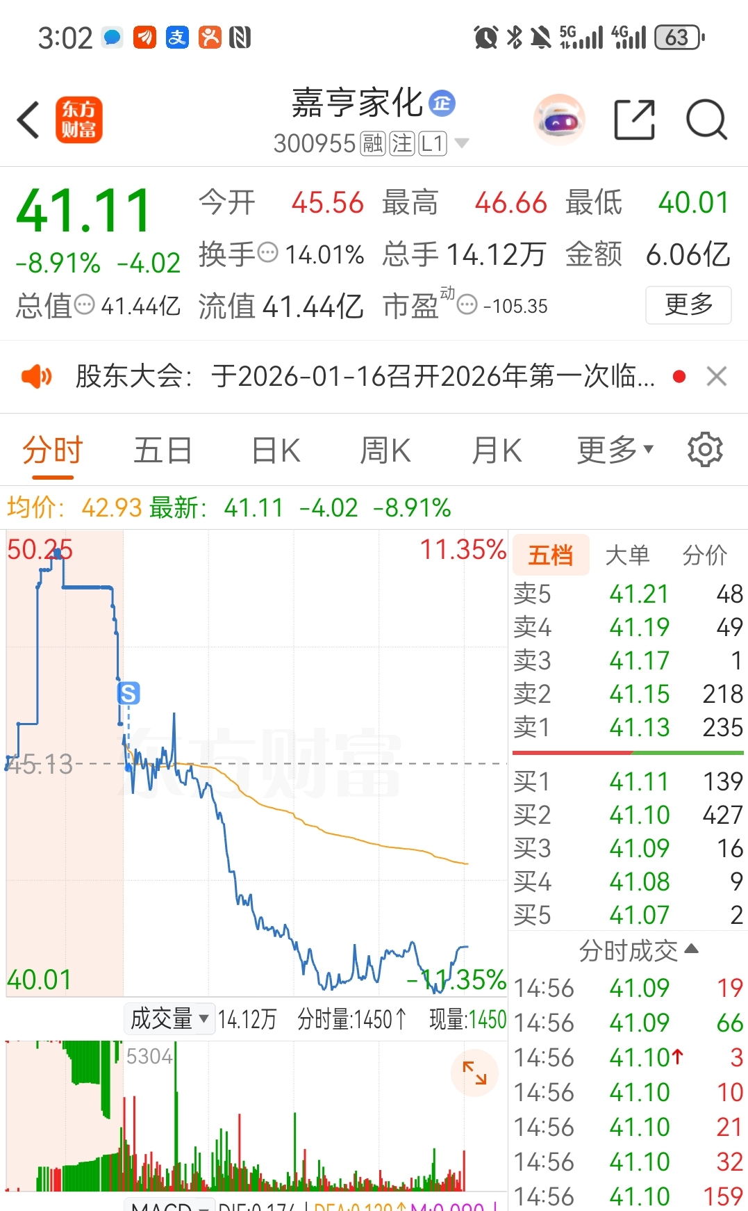 $嘉亨家化(SZ300955)$ 主力太弱,开盘走了,删除自选