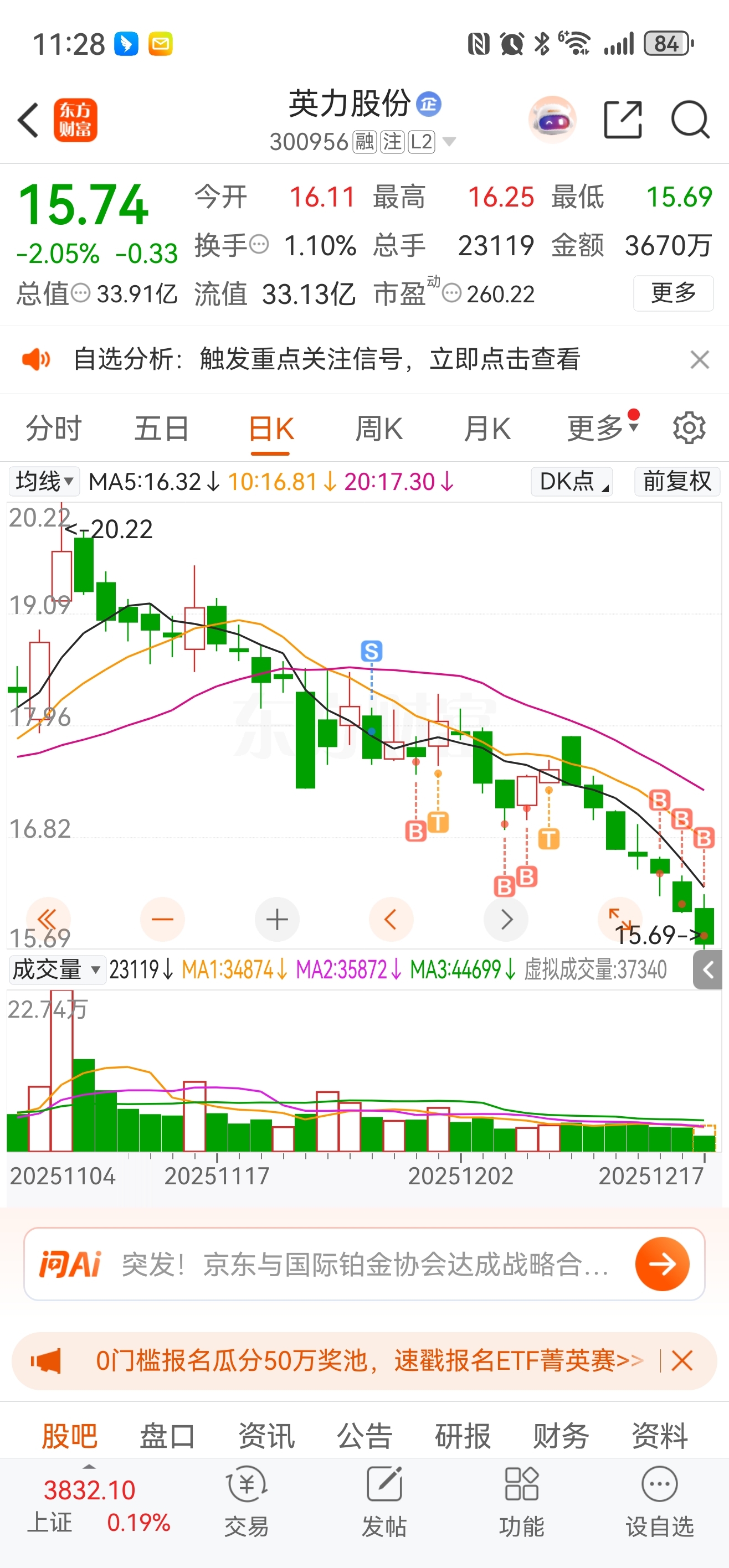 $英力股份(SZ300956)$ 服了,天天跌我天天补,有种跌到14!