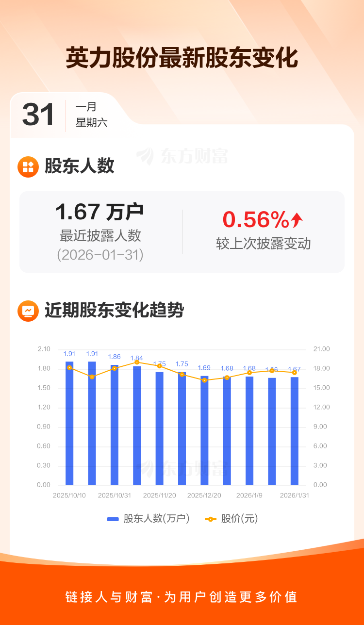 英力股份:截至1月31日最新股东户数1.67万户,较上期增加0.56%