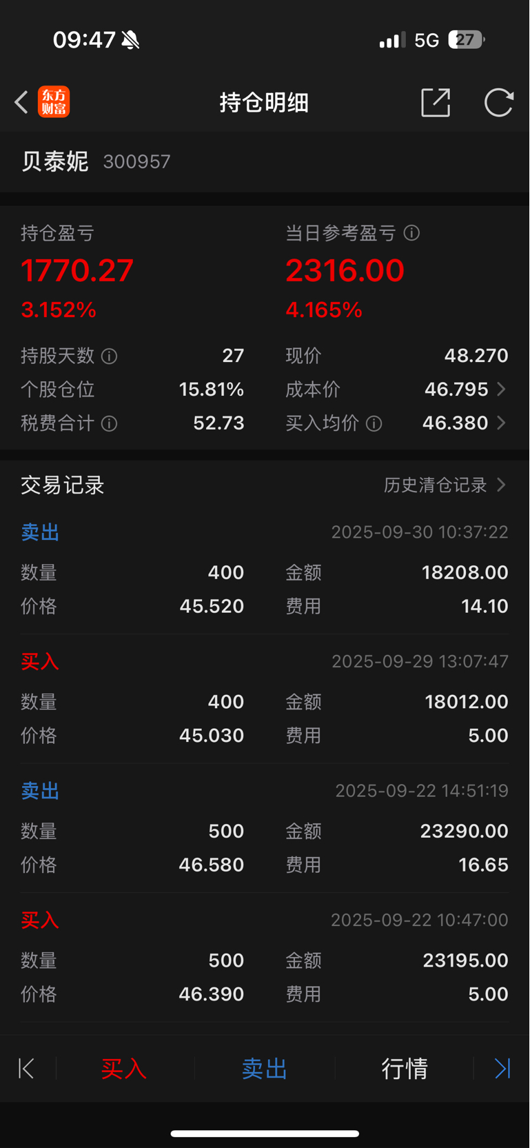 $贝泰妮(SZ300957)$ 又挣钱了,开心