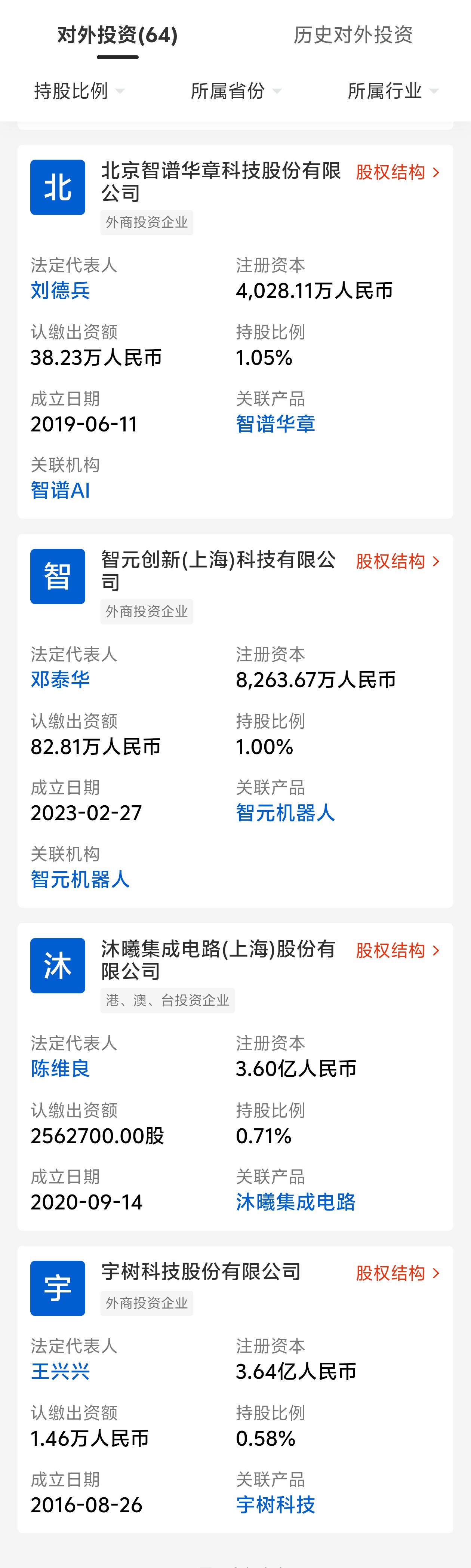 居然同时间接持有沐曦、智谱、智元机器人、宇树科技