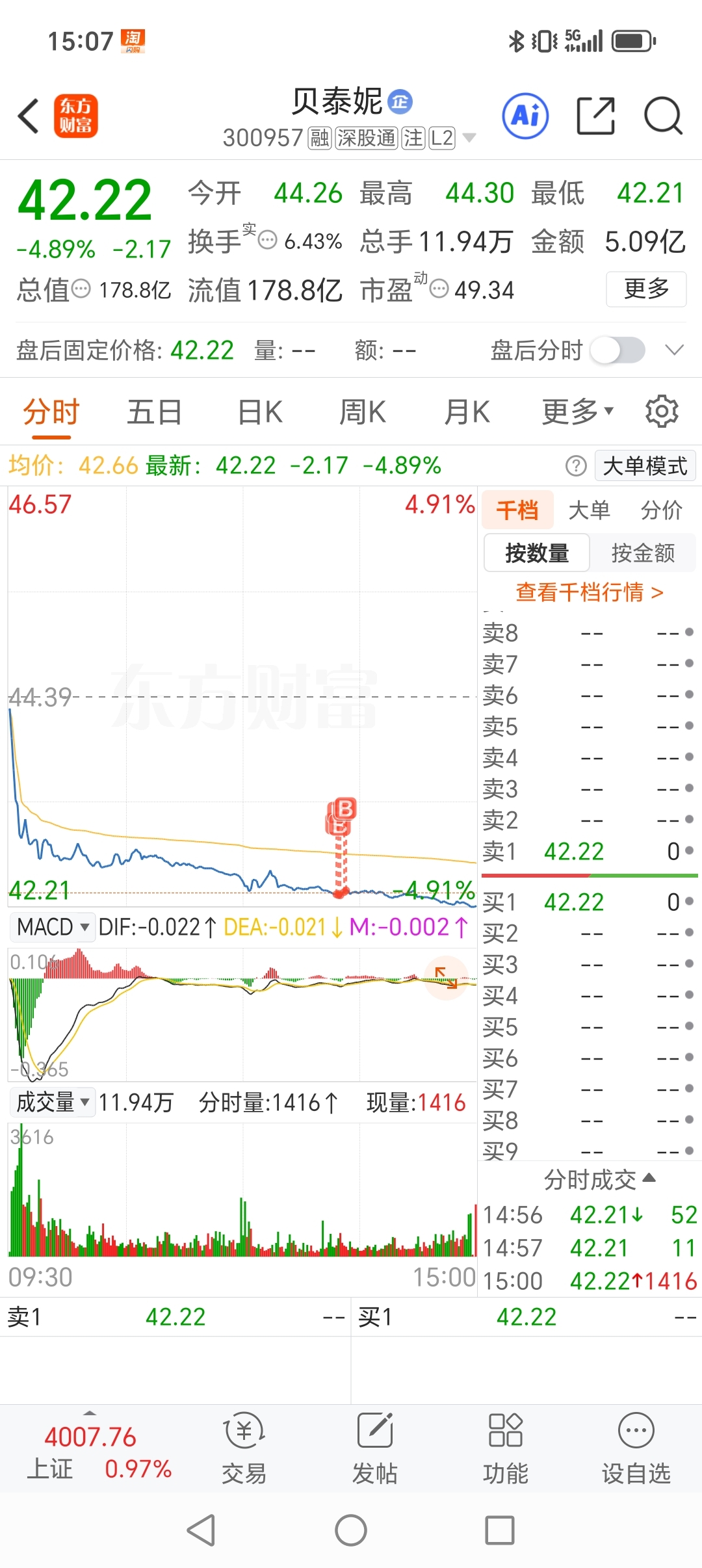 $贝泰妮(SZ300957)$ 一买就被套,看月线以为低点,原来还在半山腰。
