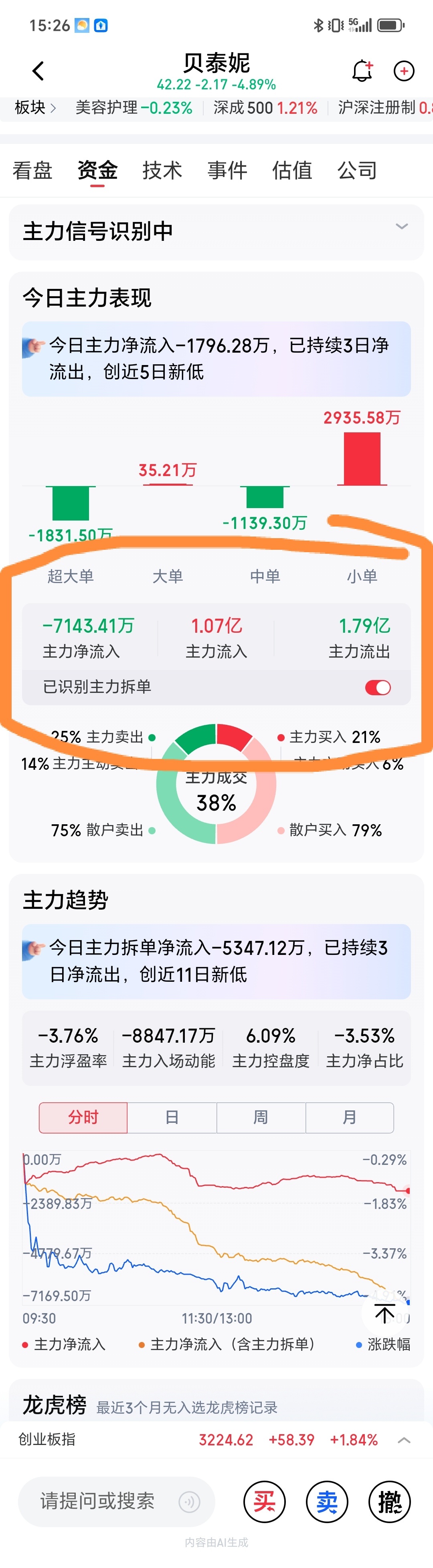 $贝泰妮(SZ300957)$ 主力跑了1个多亿啊。