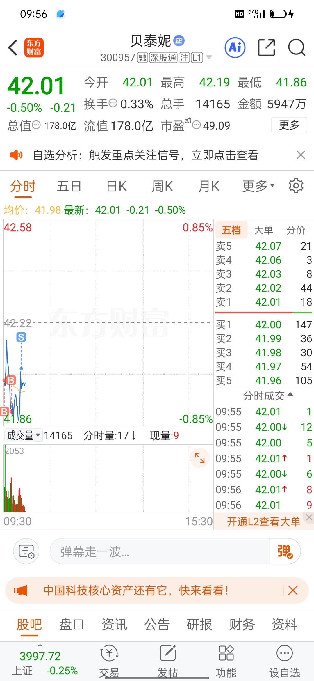 $贝泰妮(SZ300957)$ 我又无所谓的,还能买十几次,我这么恶心的人,你套我,那我就和你拼命,毕竟我才半仓亏三个多点,不服来干下面挂到41,两毛一挂,我不信你有多能耐,4000点的大盘,有这么恶心的吗