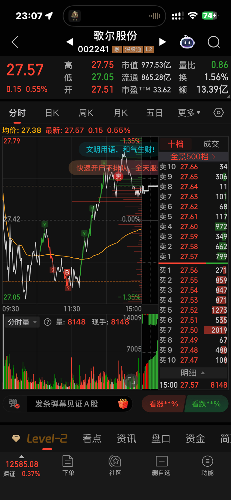 回调加仓,今天上的,有盼头。在这里几千股就躺平了。