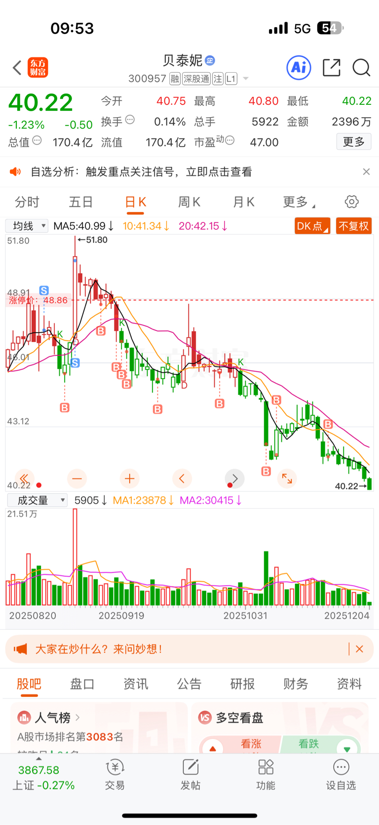 $贝泰妮(SZ300957)$ 晓得是个垃圾,还买,活该呀