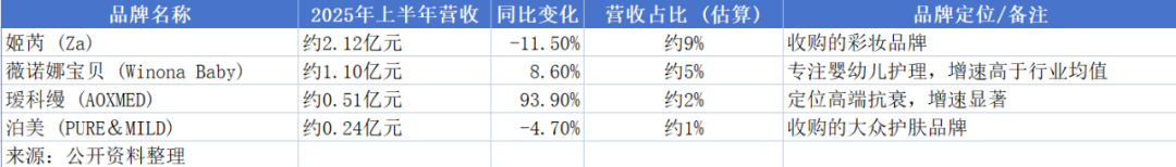 数据显示,今年上半年“姬芮”与“泊美”品牌分别实现营收2.12亿元与0.24亿元,同比分别下降11.5%与4.7%。