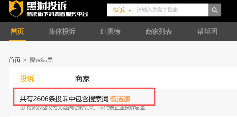 截至2025年12月6日,在黑猫平台上搜索“薇诺娜”,仍有高达2606条投诉包含这一关键词。