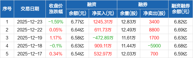 贝泰妮:融资净买入1245.31万元,融资余额6.77亿元(12-23)
