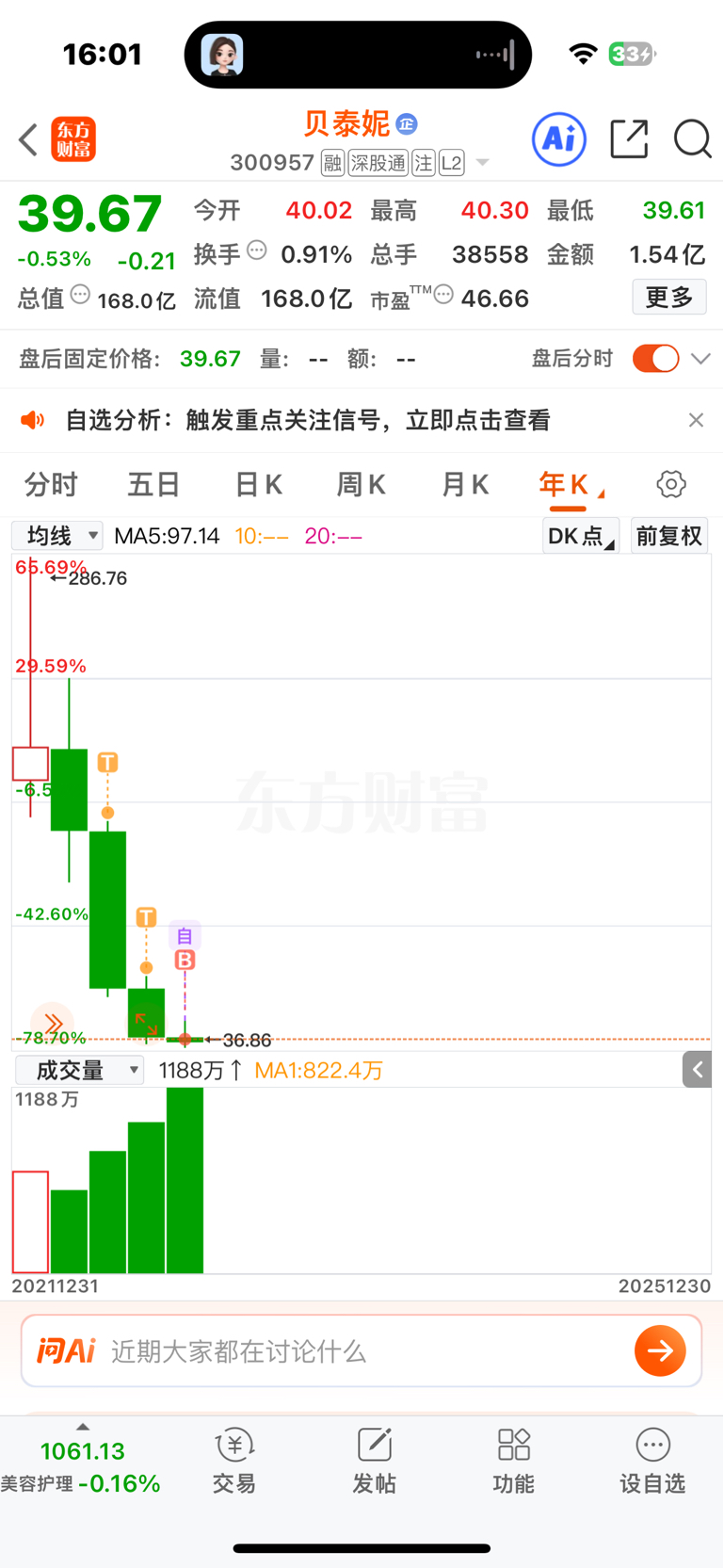 $贝泰妮(SZ300957)$ 顶流公司,大A独一无二
