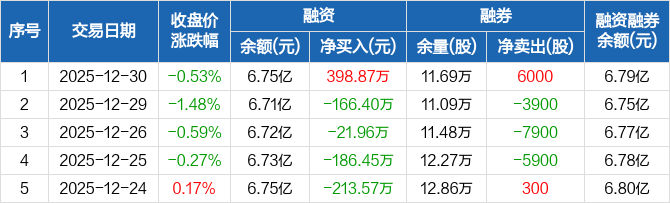 贝泰妮:融资净买入398.87万元,融资余额6.75亿元(12-30)