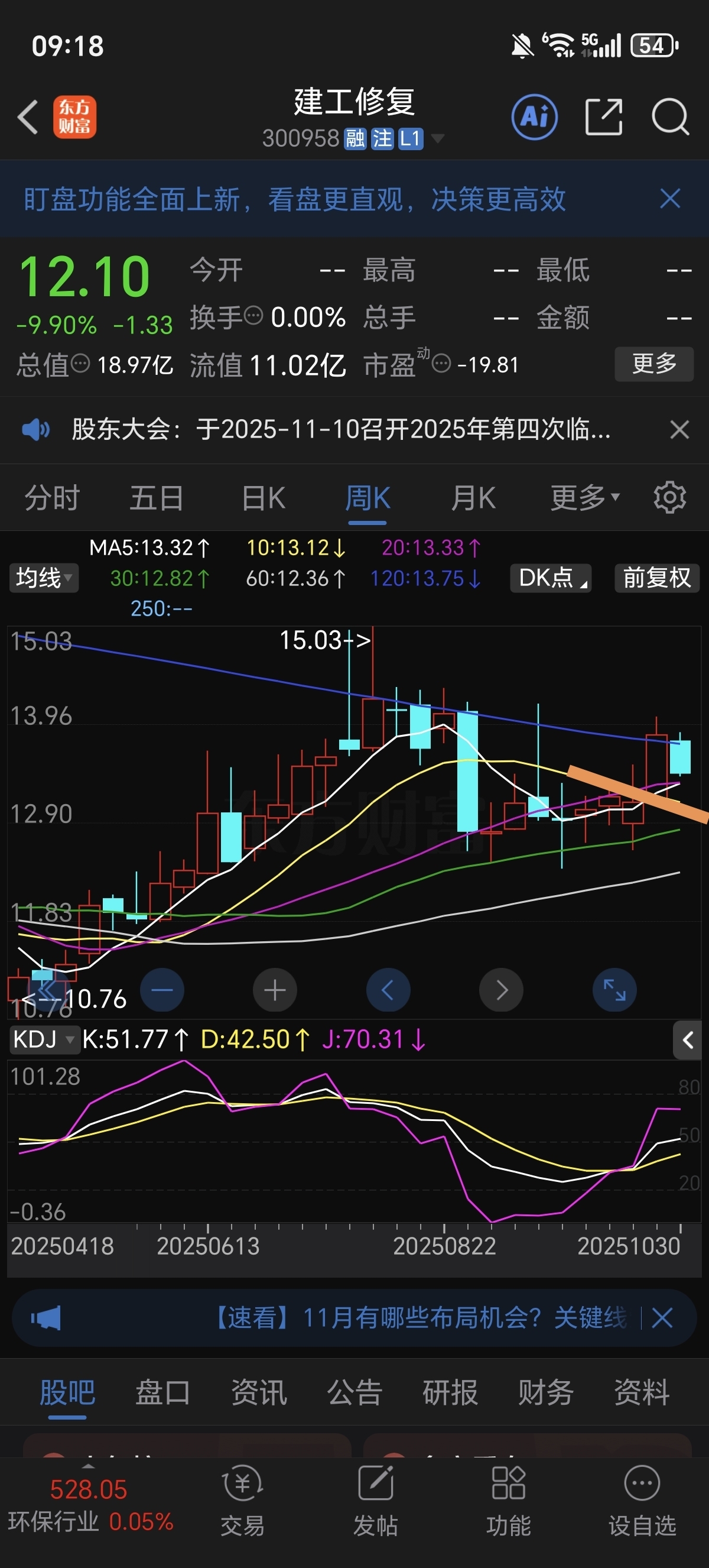 $建工修复(SZ300958)$ 10周线回踩