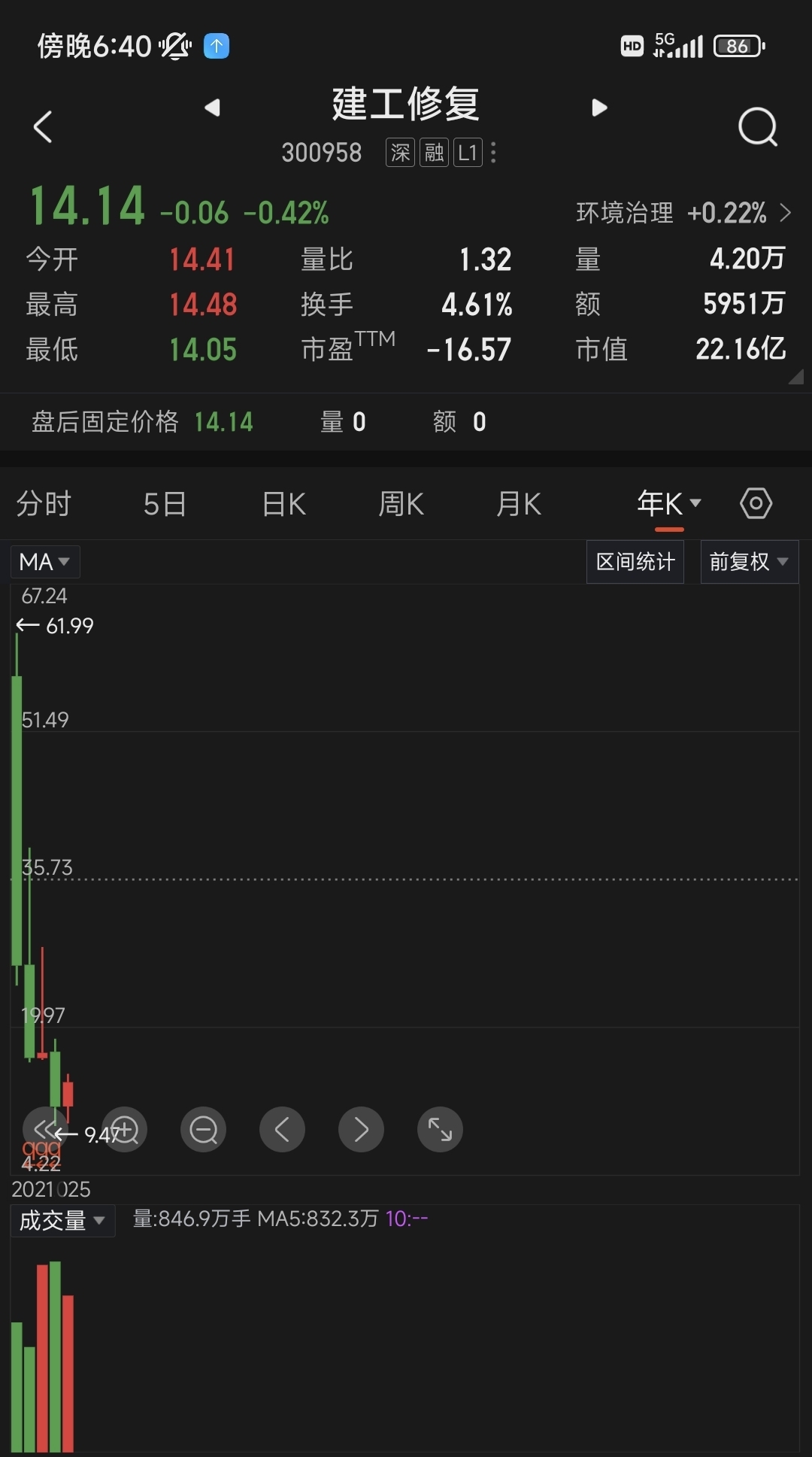 (3)建工修复,看了下,最低价是9.47元,下跌空间还是有的。要是股价被干到那里