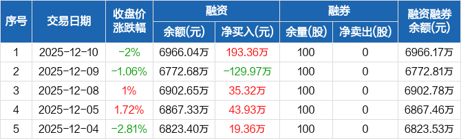 建工修复:融资净买入193.36万元,融资余额6966.04万元(12-10)