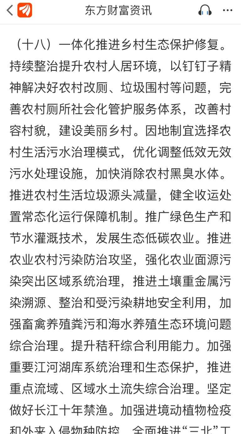 今天上午的异动和一号文件有关系吗?第十八条讲了土地修复,环保