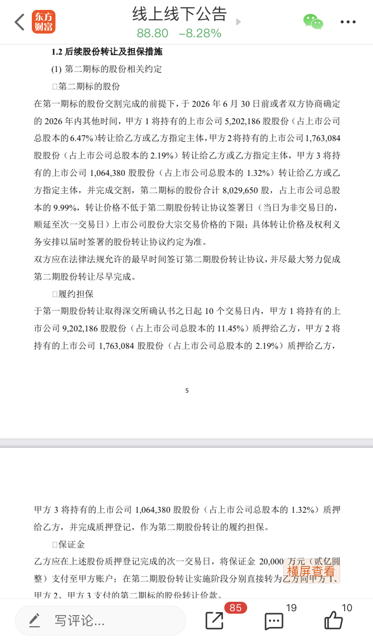 9月29日质押,9月30日乙方就要存入保证金了,然后就是申请第二期的股份转让,应
