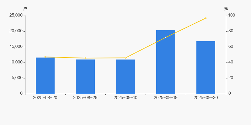 2025年8月20日至今,公司股东户数显著增长,区间涨幅为45.47%。2025年8月20日至2025年9月30日区间股价上涨105.39%。