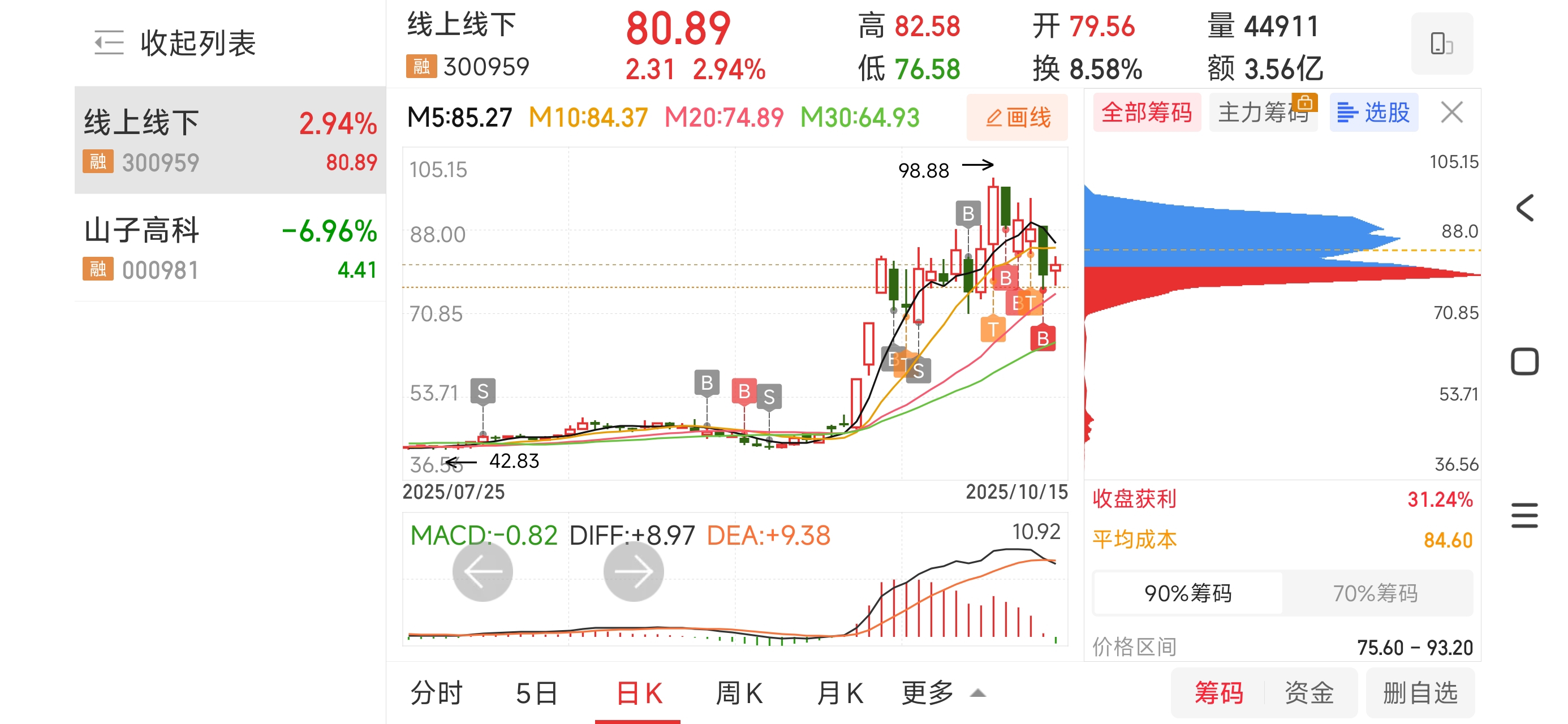 $线上线下(SZ300959)$ 筹码还在不要慌