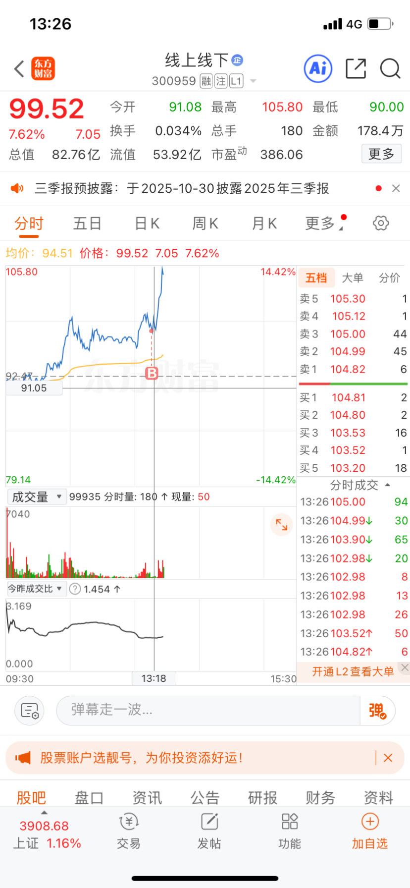 午盘选择介入$线上线下(SZ300959)$ 值得期待#强势机会# #实盘记录# #投资干货# #投资随笔# #股市怎么看#