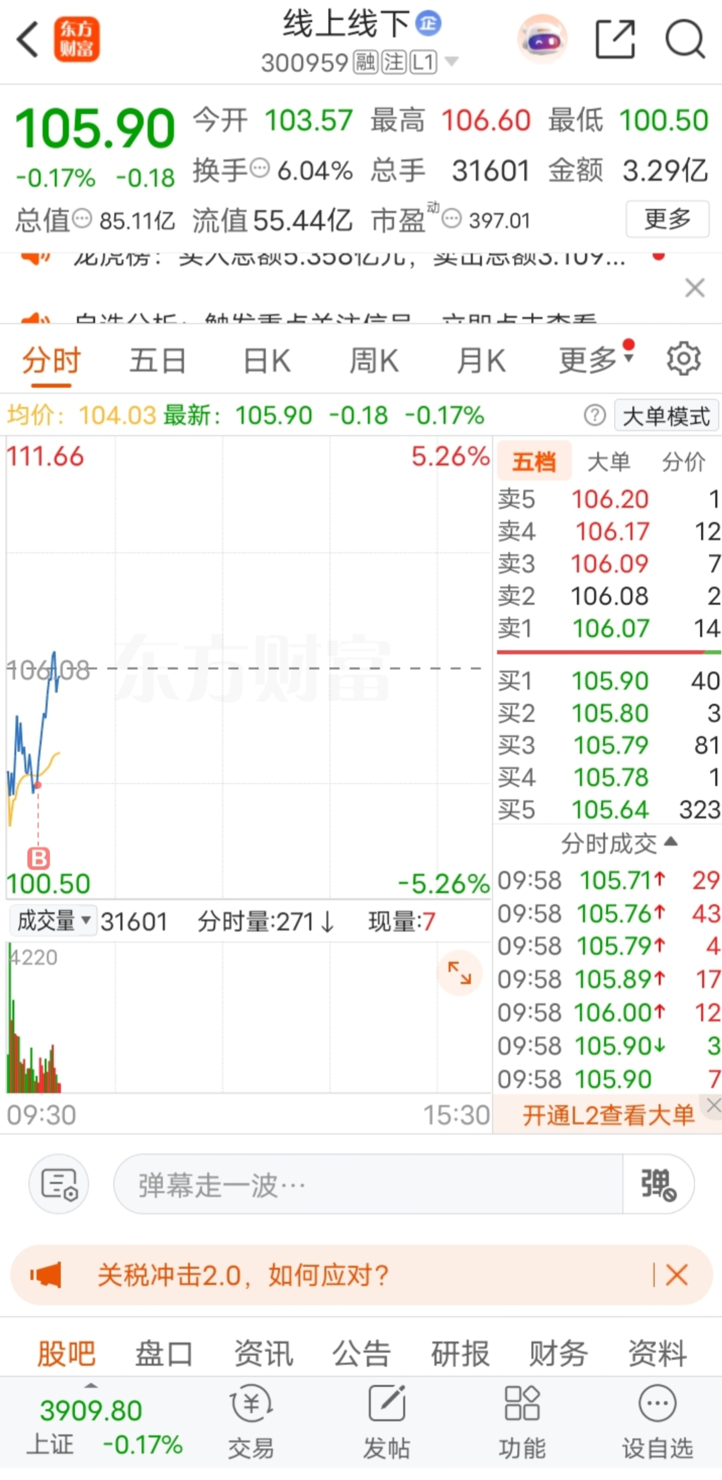 水下介入了$线上线下(SZ300959)$ #炒股日记# #实盘记录# #投资干货#