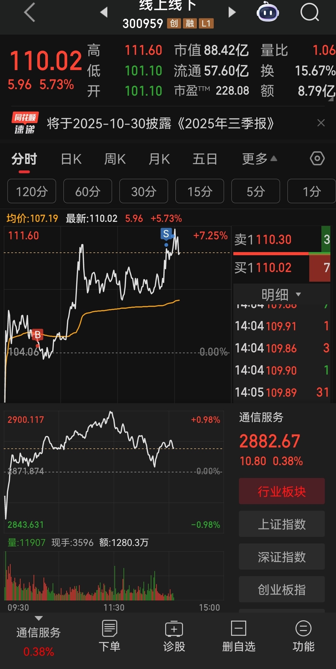 $线上线下(SZ300959)$ 分两笔走了,早上进的一点点底仓明天卖。感觉还没走完,但是持股体验太难受了,受不了。主力已高度控盘,k线随便画。