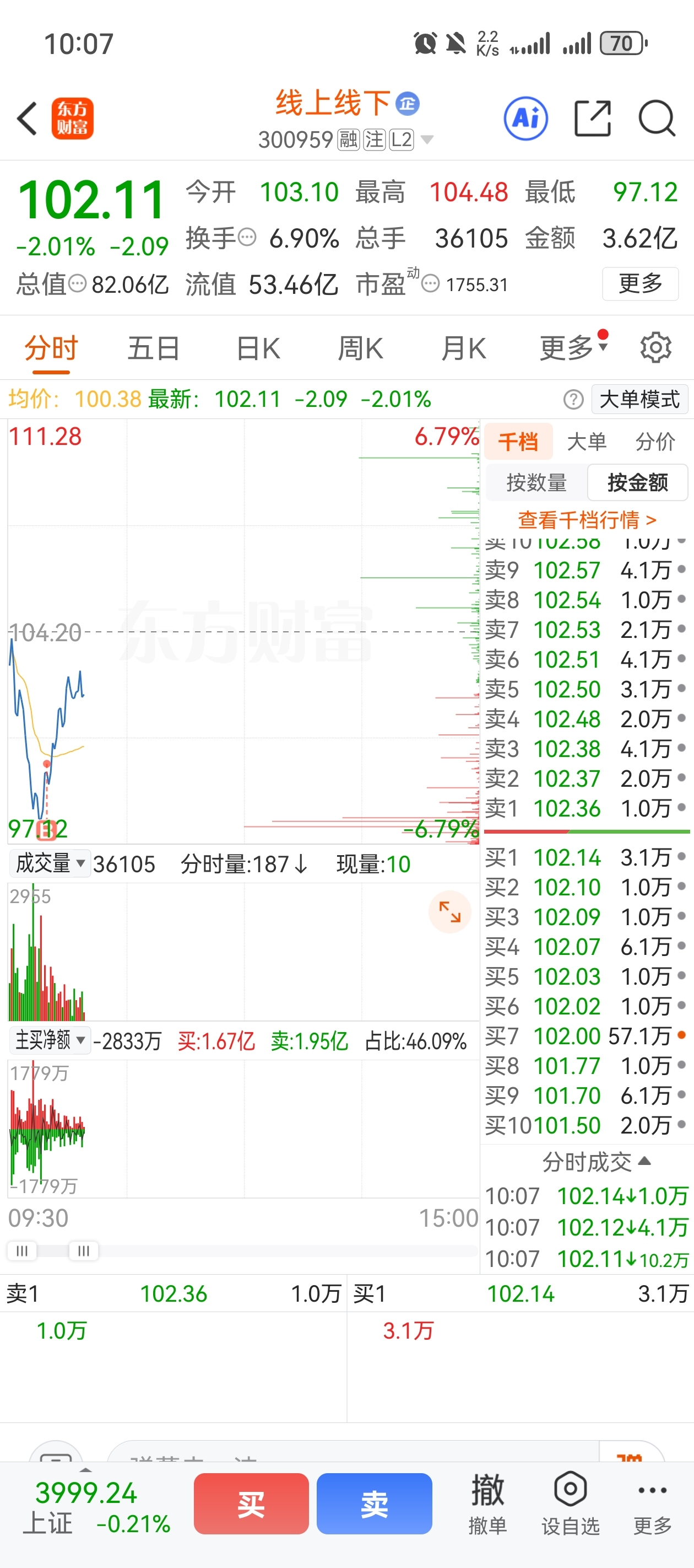 $线上线下(SZ300959)$ 打个底仓,可惜没有搞在最低点