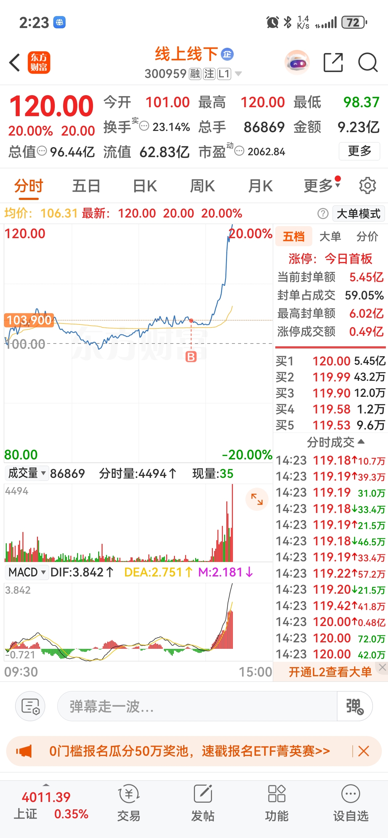 $线上线下(SZ300959)$ 今天靠这大哥回大血。