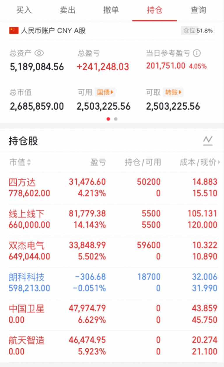 成本105.13航天智造300446成本20.27已清仓中国卫星600118成本