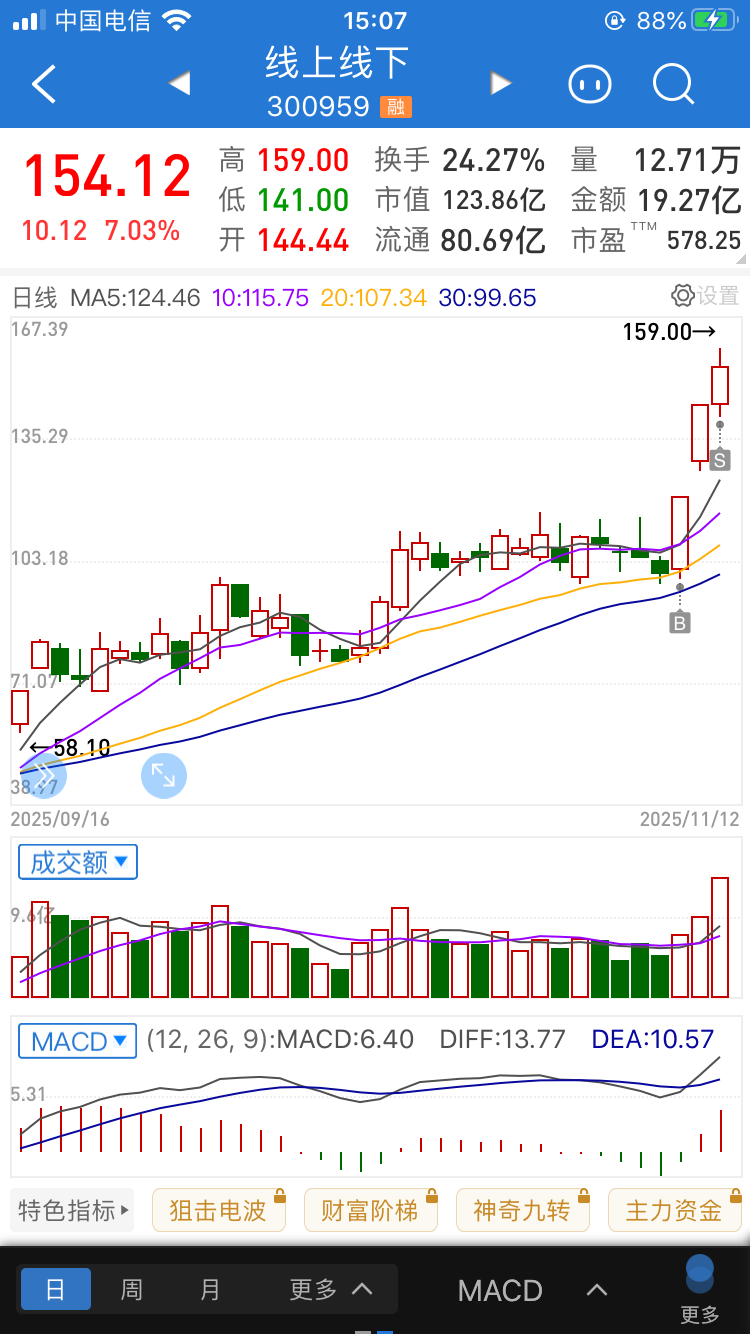 $线上线下(SZ300959)$ 拿不住了,留下的发财