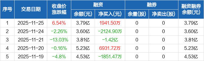 线上线下:融资净买入1941.5万元,融资余额3.79亿元(11-25)