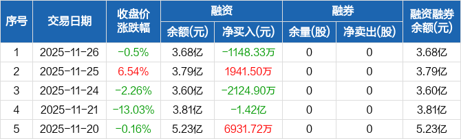 线上线下:融资净偿还1148.33万元,融资余额3.68亿元(11-26)