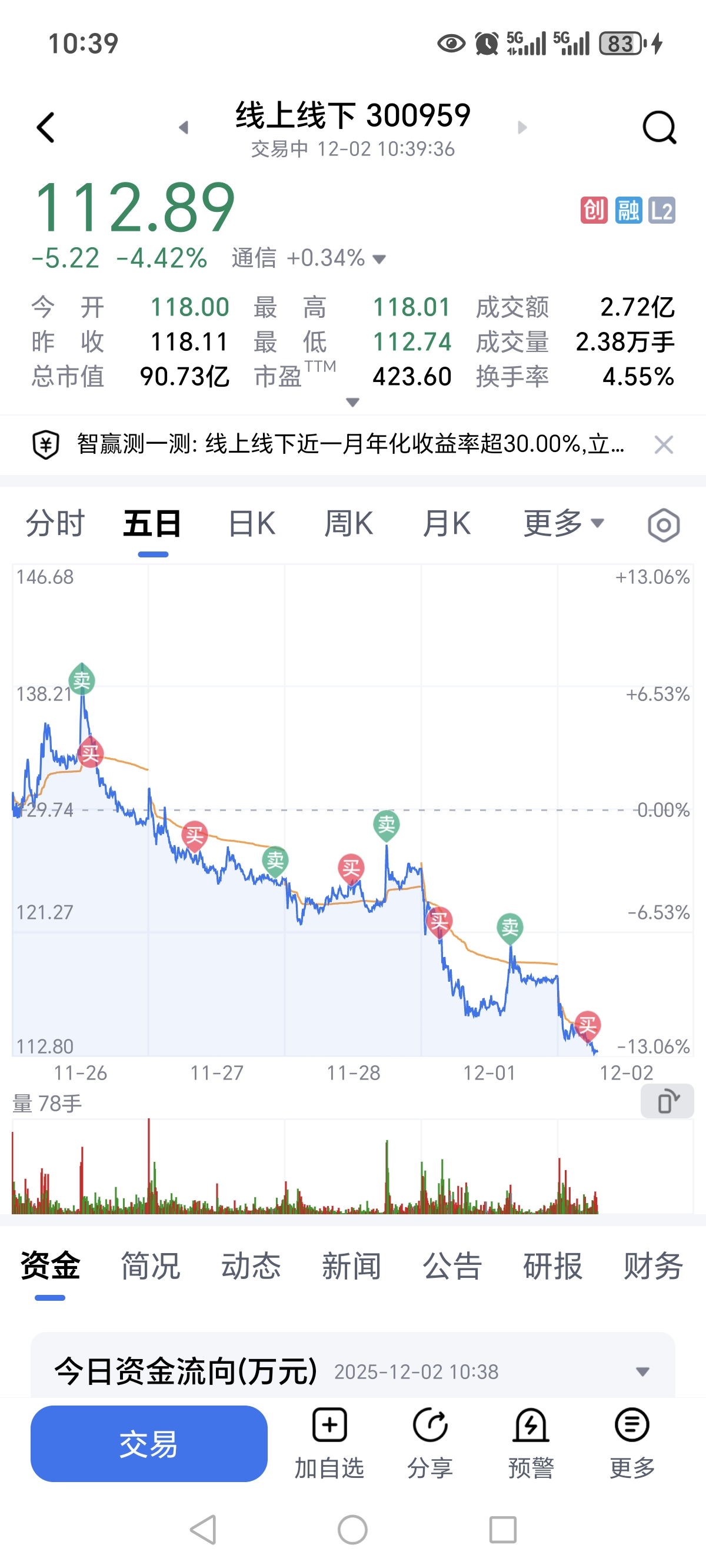 一路向下做T,玛德,成本112,割了,全仓割了,不拿了累死了