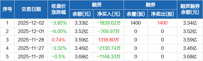 线上线下:融资净偿还1839.62万元,融资余额3.33亿元(12-02)