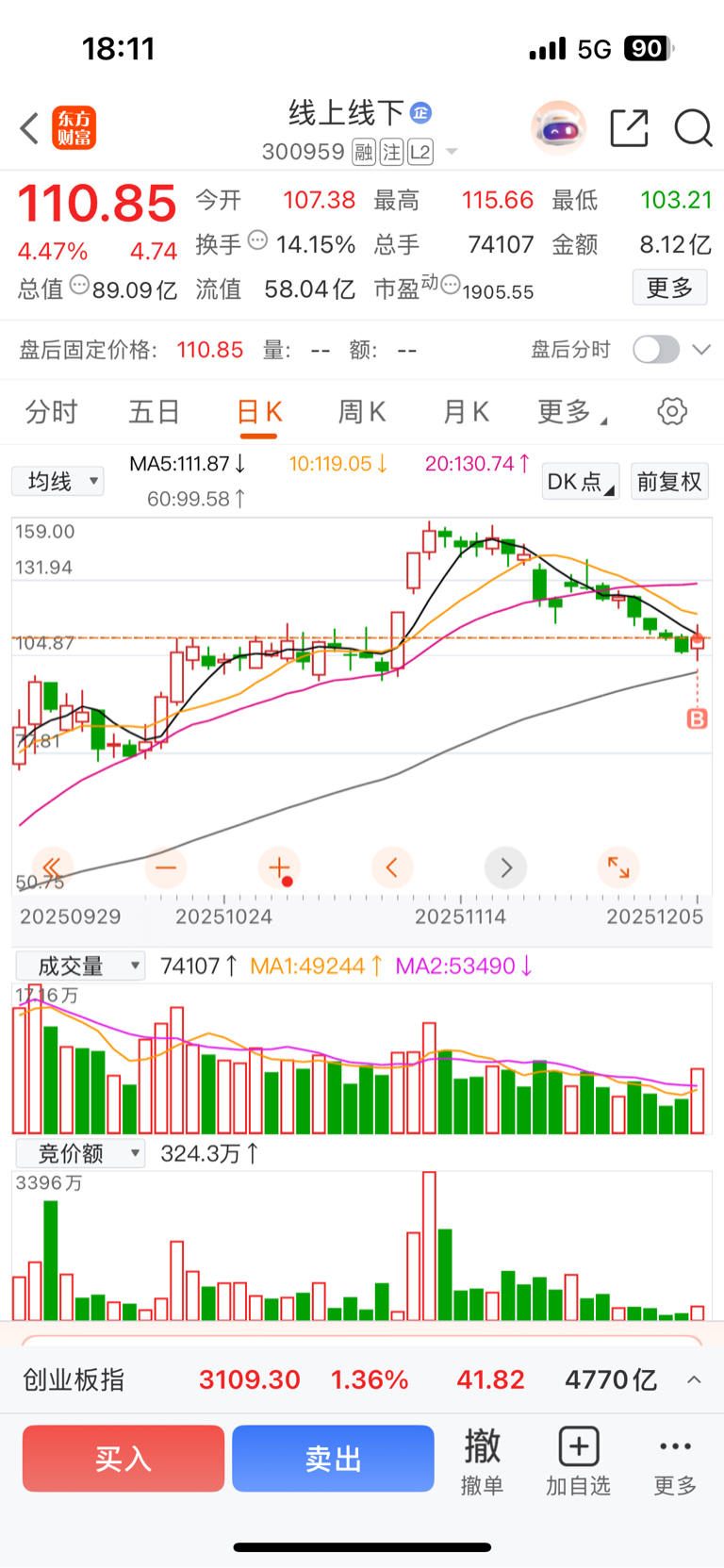 $线上线下(SZ300959)$ 这个算止跌了吗,今天低开,买了一层仓,等个反弹。