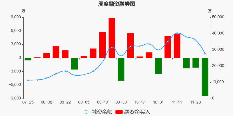 线上线下本周(2025/12/01-2025/12/05)累计跌幅达11.83%,截至12月5日最新股价报收110.85元。从增量上来看,12月1日至12月4日融资买入交易规模1.49亿元,融资偿还规模2.32亿元,期内融资净偿还8370.1万元。从存量上来看,截止12月7日,线上线下融资融券余额2.76亿元,其中融资余额规模2.76亿元,融券余额规模14.86万元。