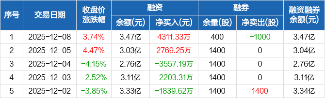 线上线下:融资净买入4311.33万元,融资余额3.47亿元(12-08)