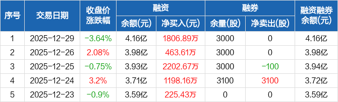 线上线下:连续5日融资净买入累计5896.77万元(12-29)